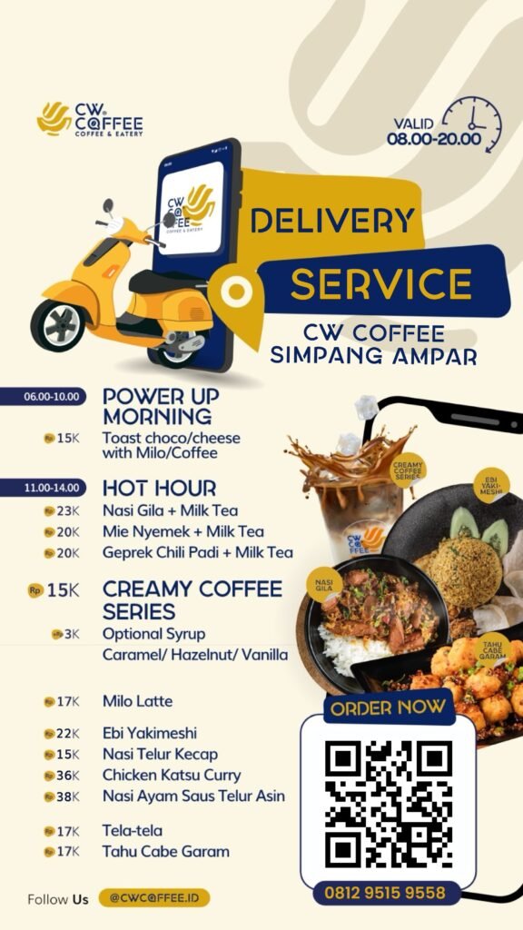 Simpang Ampar, 28 Agustus 2024. – Kabar baik bagi para Sahabat Sejatiku! Menghadapi cuaca hujan yang tak kunjung reda, CW Coffee Simpang Ampar hadir dengan solusi yang tepat untuk Anda. Kini, Anda tak perlu khawatir atau merasa malas untuk keluar rumah karena CW Coffee Simpang Ampar telah meluncurkan Spesial Promo Delivery!