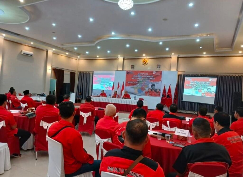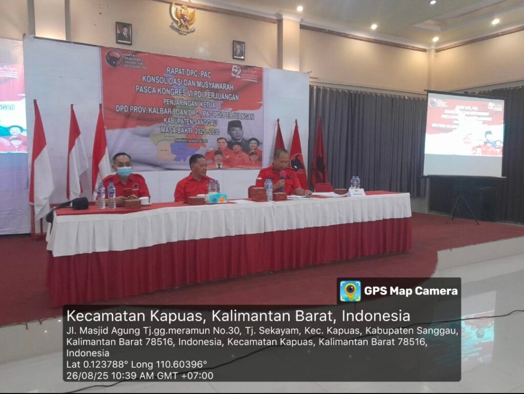 Sanggauinformasi.com. Sanggau, 26 Agustus 2025. Dewan Pimpinan Cabang (DPC) PDI Perjuangan Kabupaten Sanggau menggelar rapat konsolidasi dan musyawarah pasca Kongres VI pada Selasa, 26 Agustus 2025, di Harvey Hotel Sanggau, Kalimantan Barat. Rapat ini bertujuan mengusulkan nama-nama bakal calon Ketua DPC dan Ketua DPD, sesuai amanat Kongres VI PDI Perjuangan. Ketua DPC Sanggau, Paolus Hadi, menyampaikan bahwa seluruh jajaran pengurus DPC bersama PAC memiliki hak untuk menyampaikan usulan.